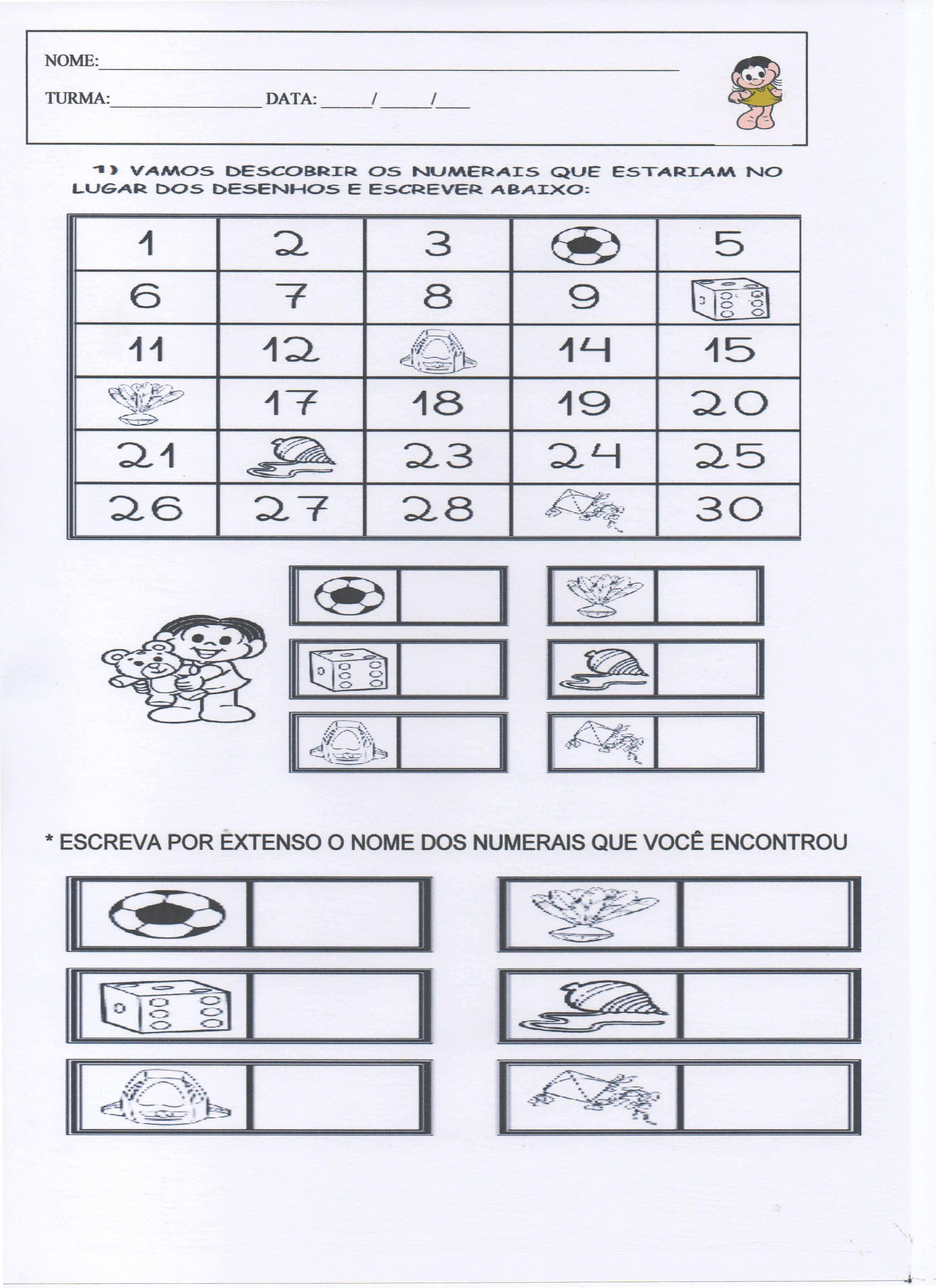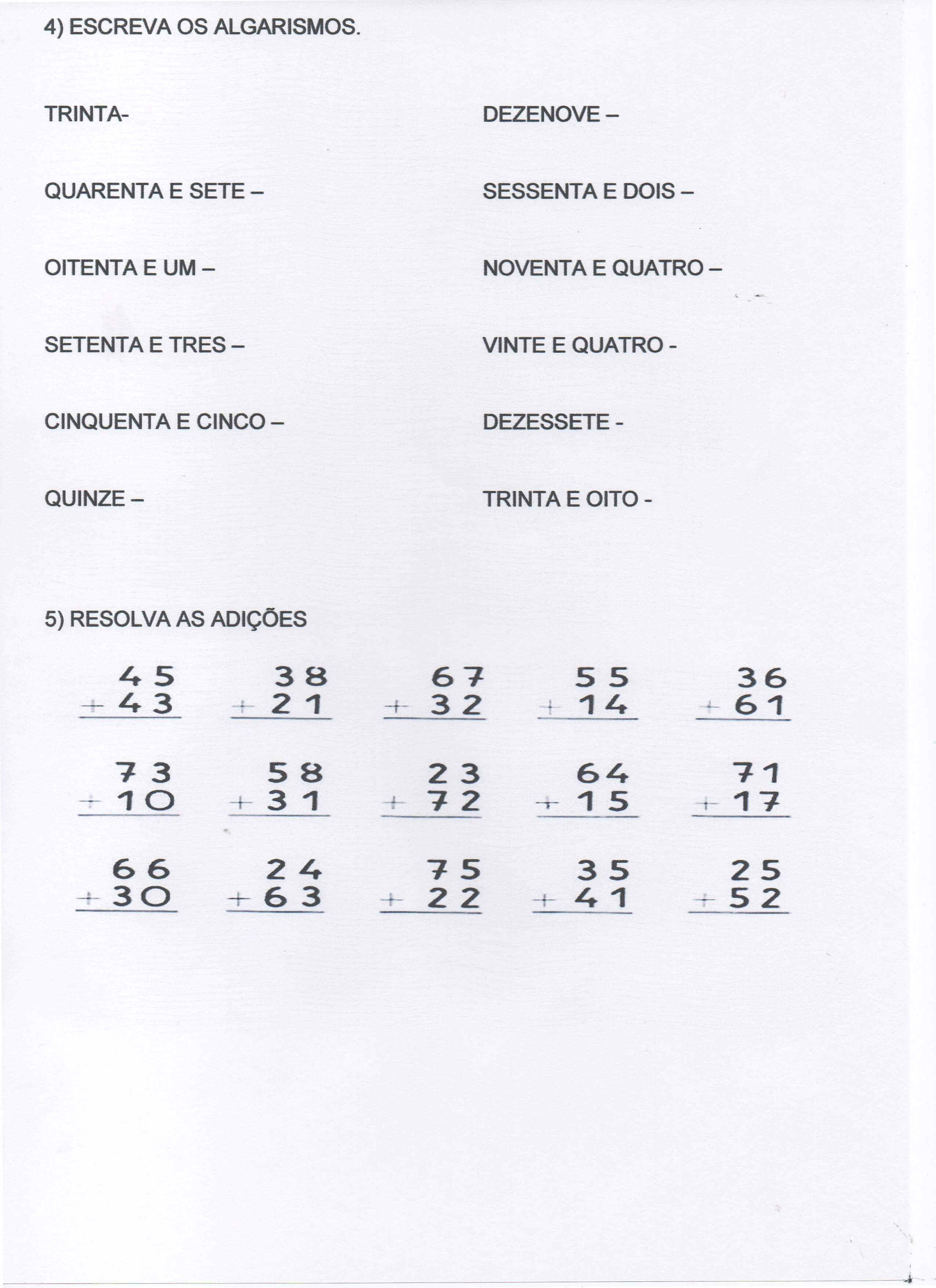 Esta parte envolve continhas e ditado com números ordinais.