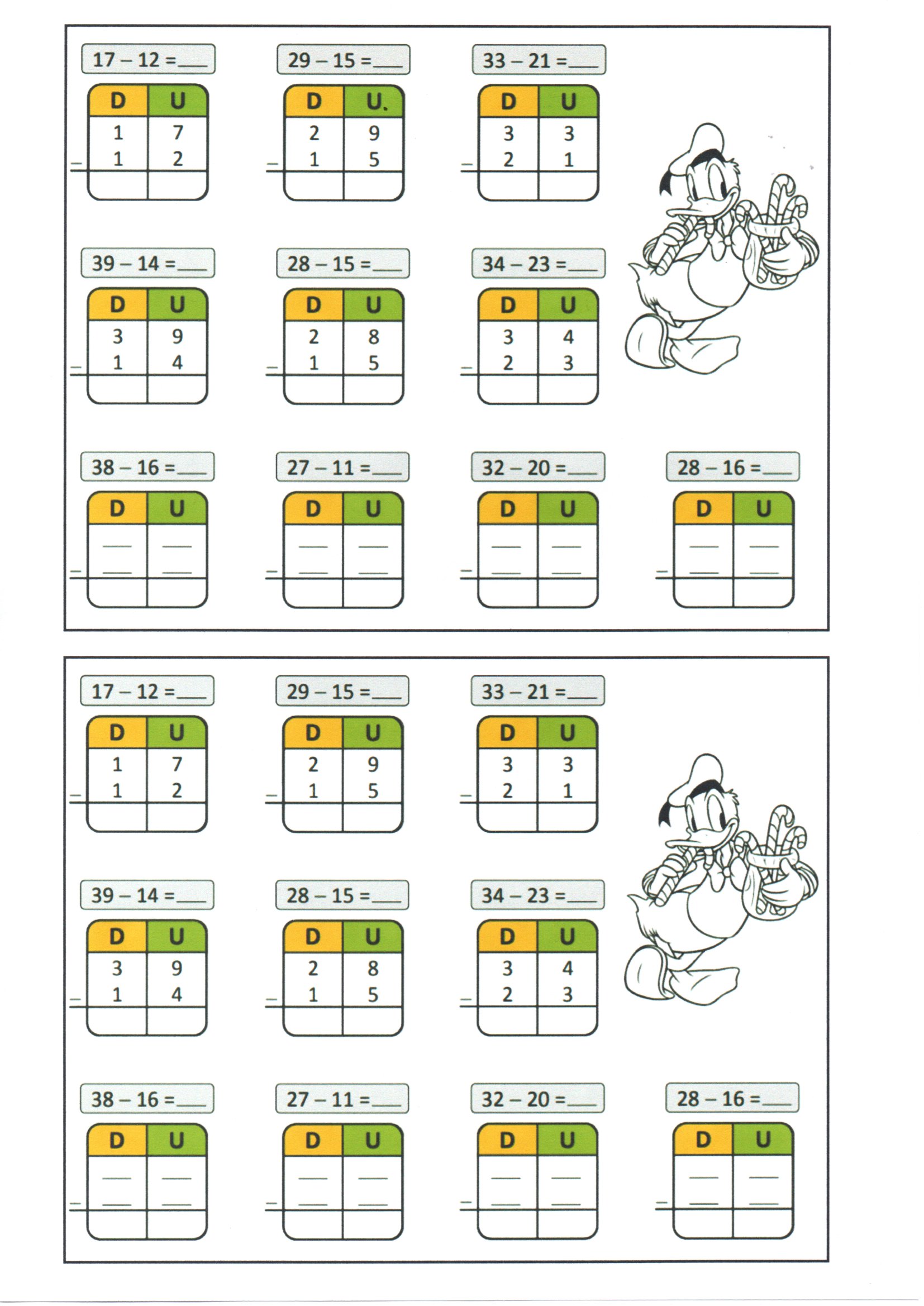 Subtração para armar-DU a partir de exemplos é uma Atividade de matemática que permite trabalhar exercícios de Subtração com contas armadas.