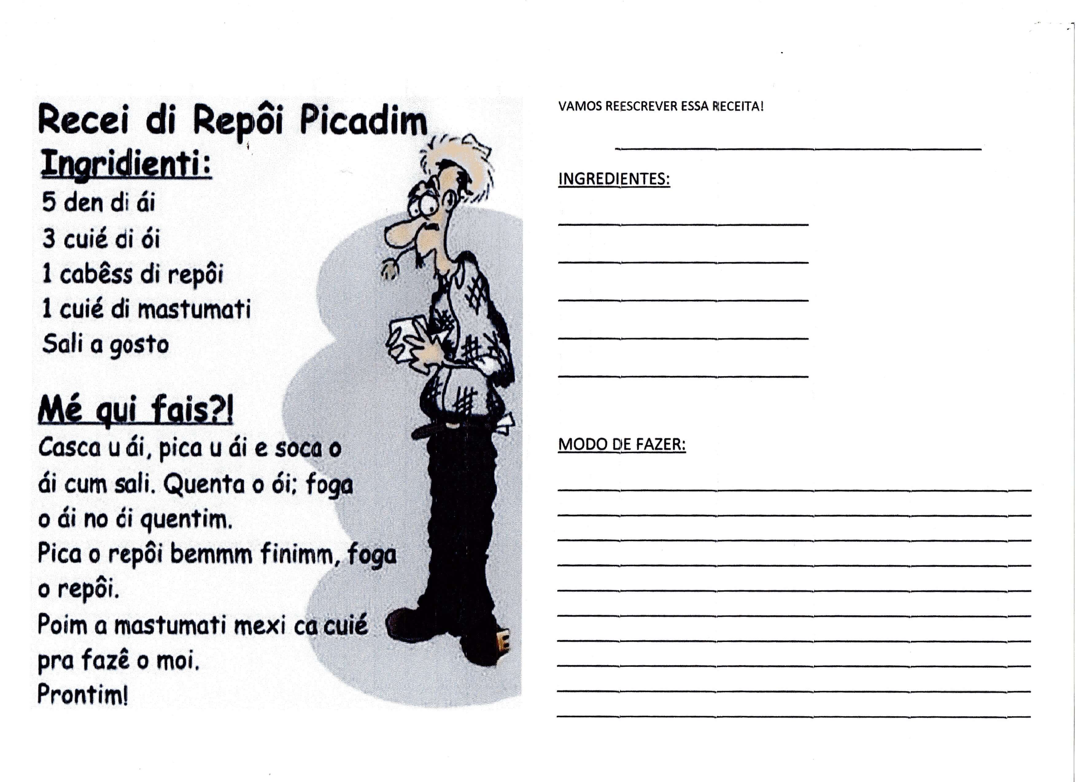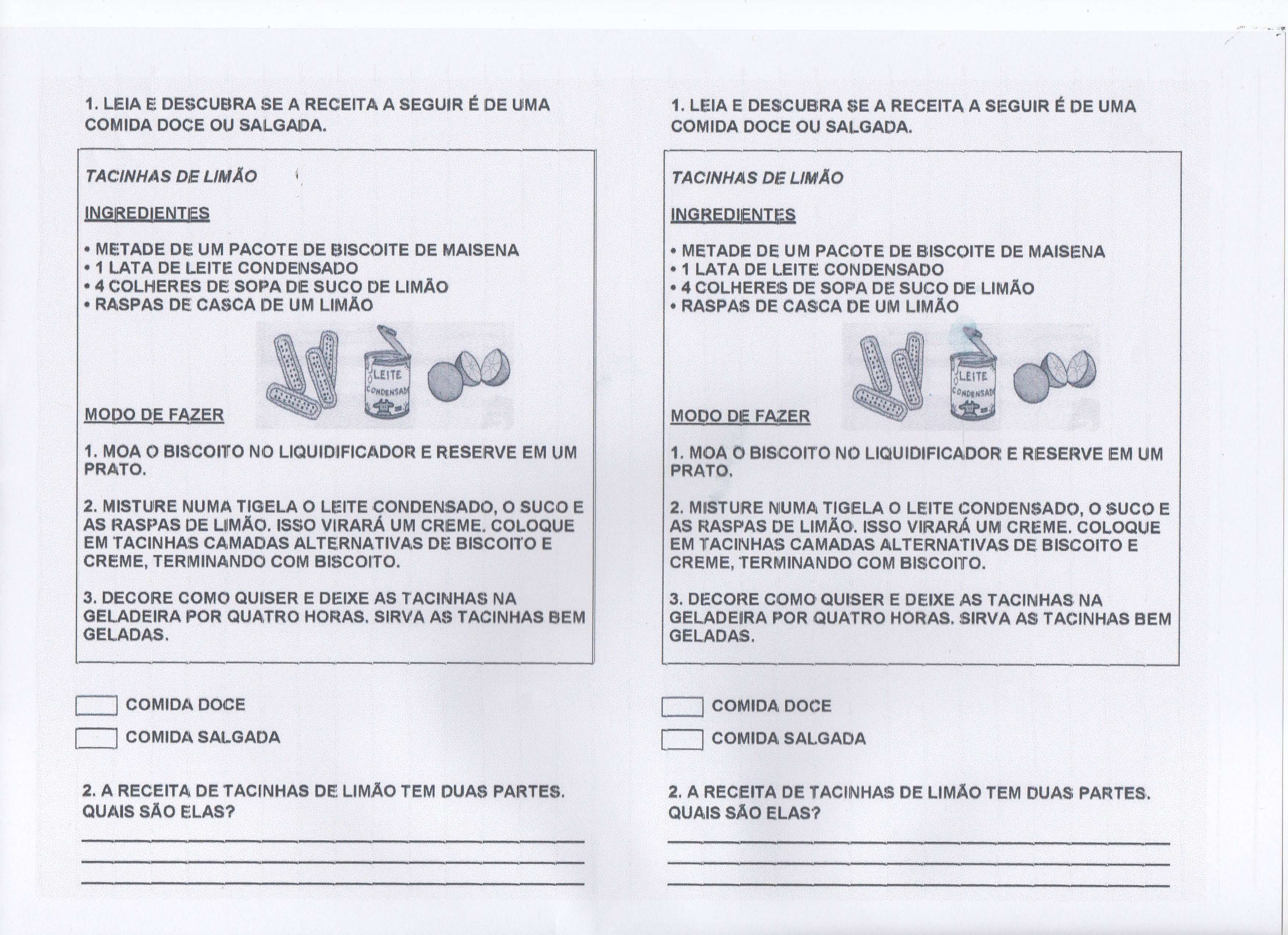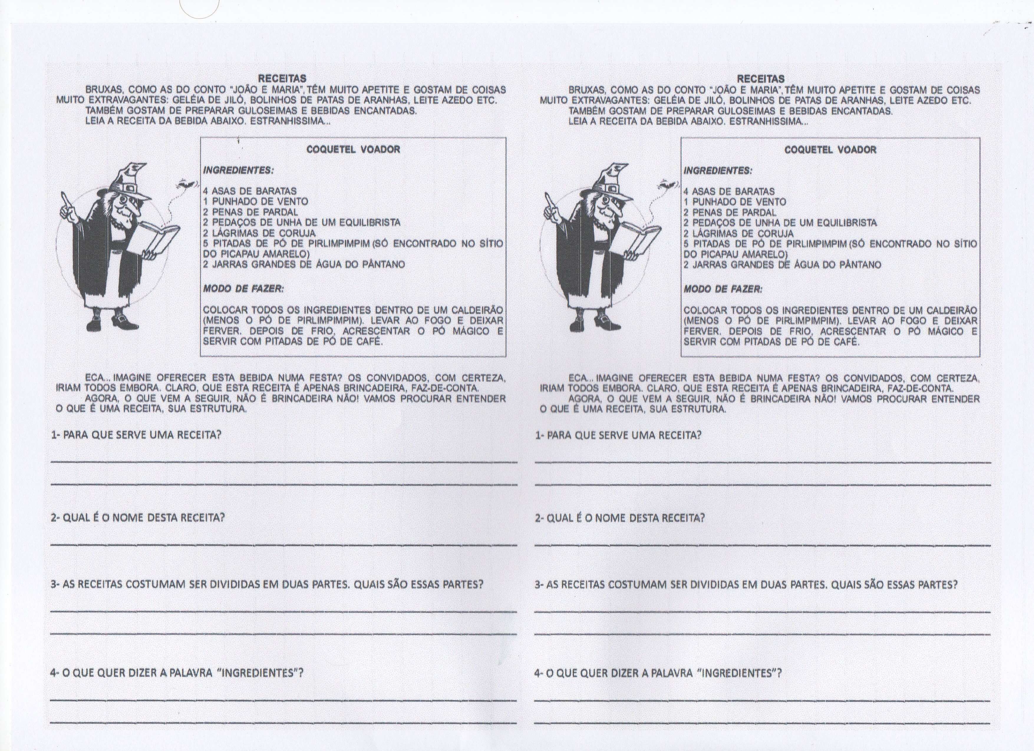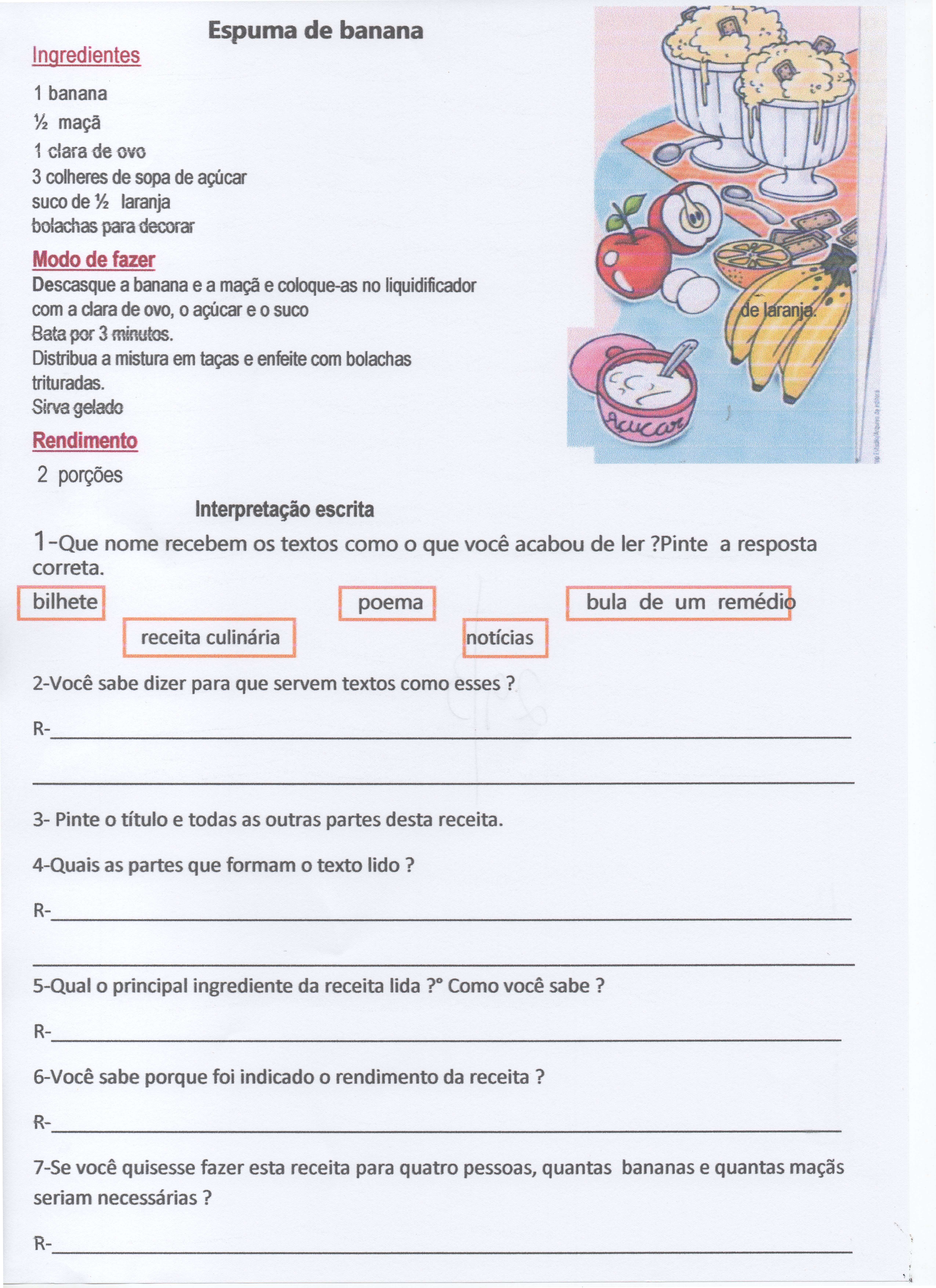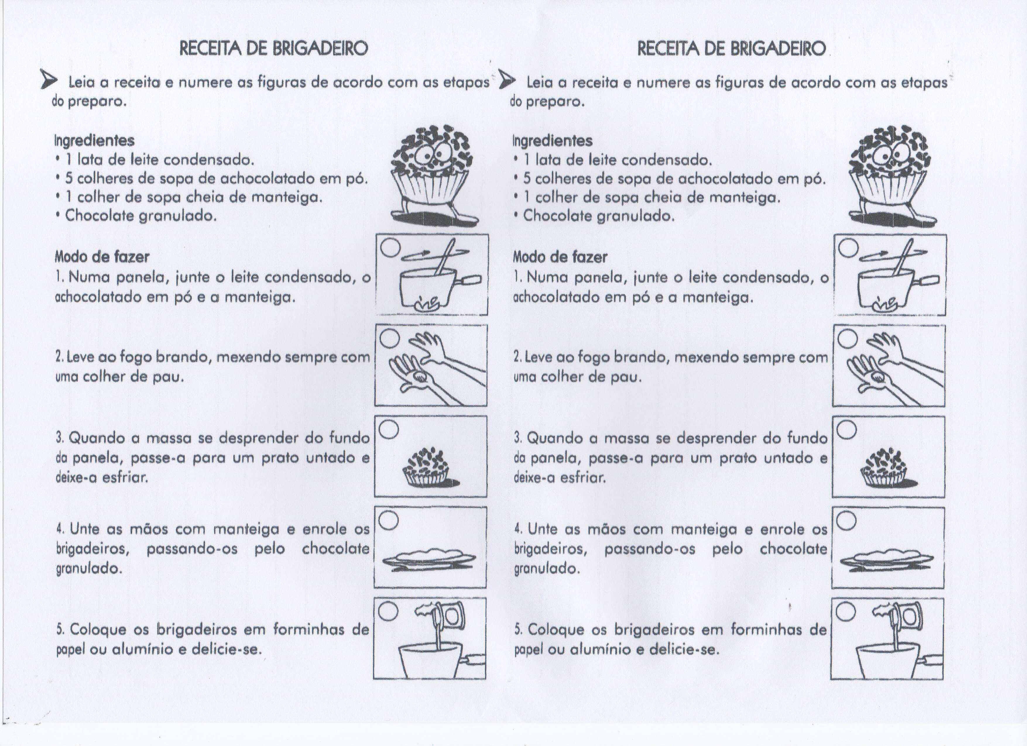 Produção de Texto-Pesquisa de Receita de Brigadeiro. Esta atividade permite trabalhar a Produção de texto a partir de uma pesquisa a ser feita em casa com a família. Depois o aluno precisa escrever a receita.