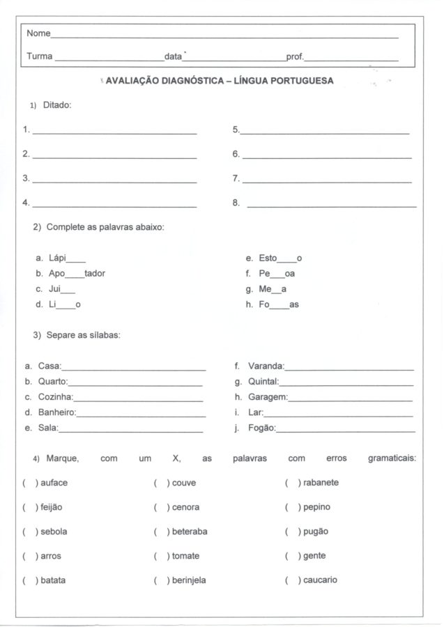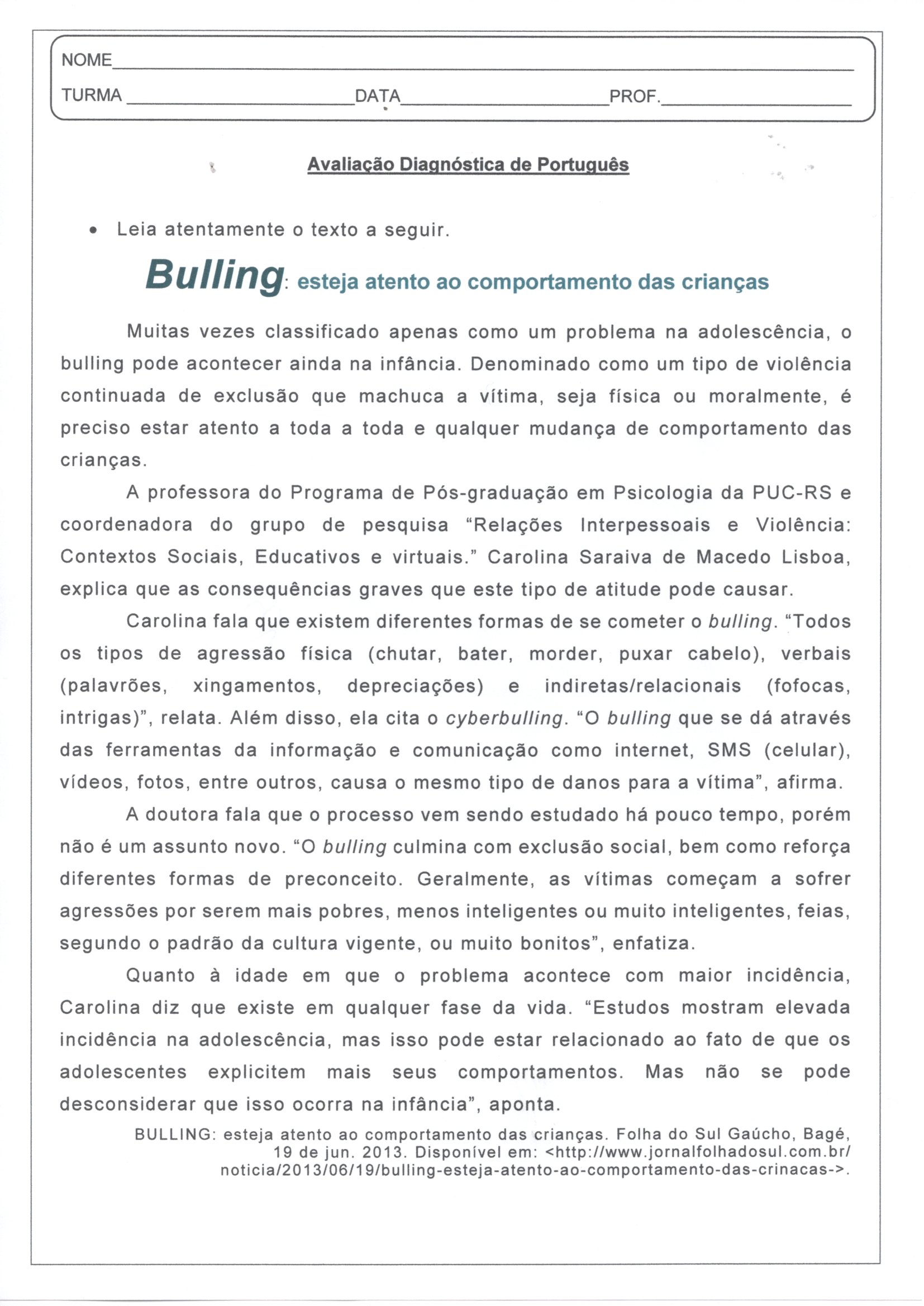 Avaliação Diagnóstica-Bulling-Verbos-Leitura e Interpretação