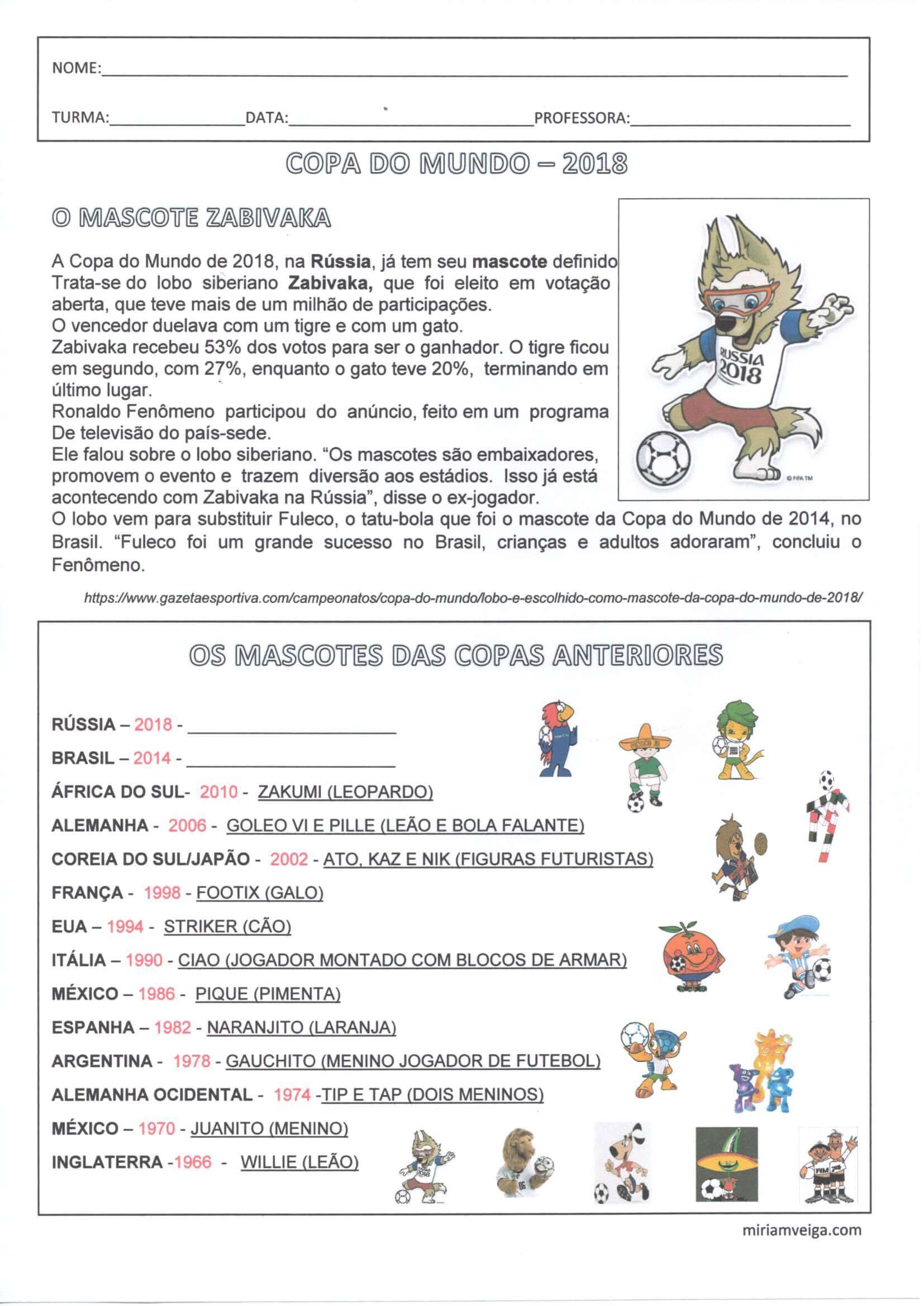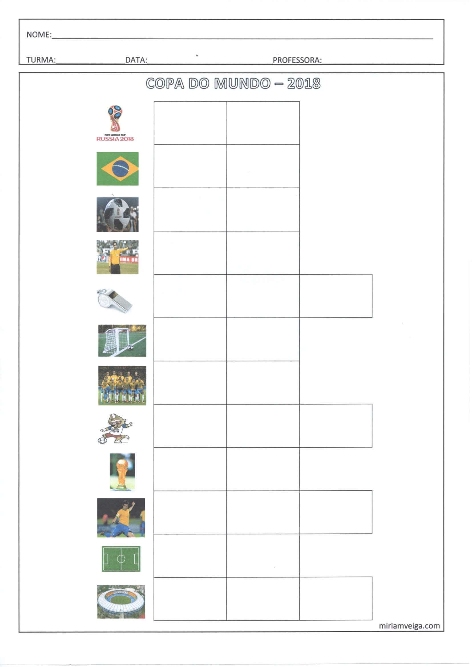 Projeto Copa do Mundo-2018-Parte 14-Viseiras. Projeto Completo da Copa do Mundo 2018 na Rússia, com Álbum de figurinhas para colar as bandeiras, mascote, interpretação, geografia, reescrita de frases, separar, juntar e contar sílabas, cruzadinhas, história das bolas, o que tem no jogo e caça-palavras.
