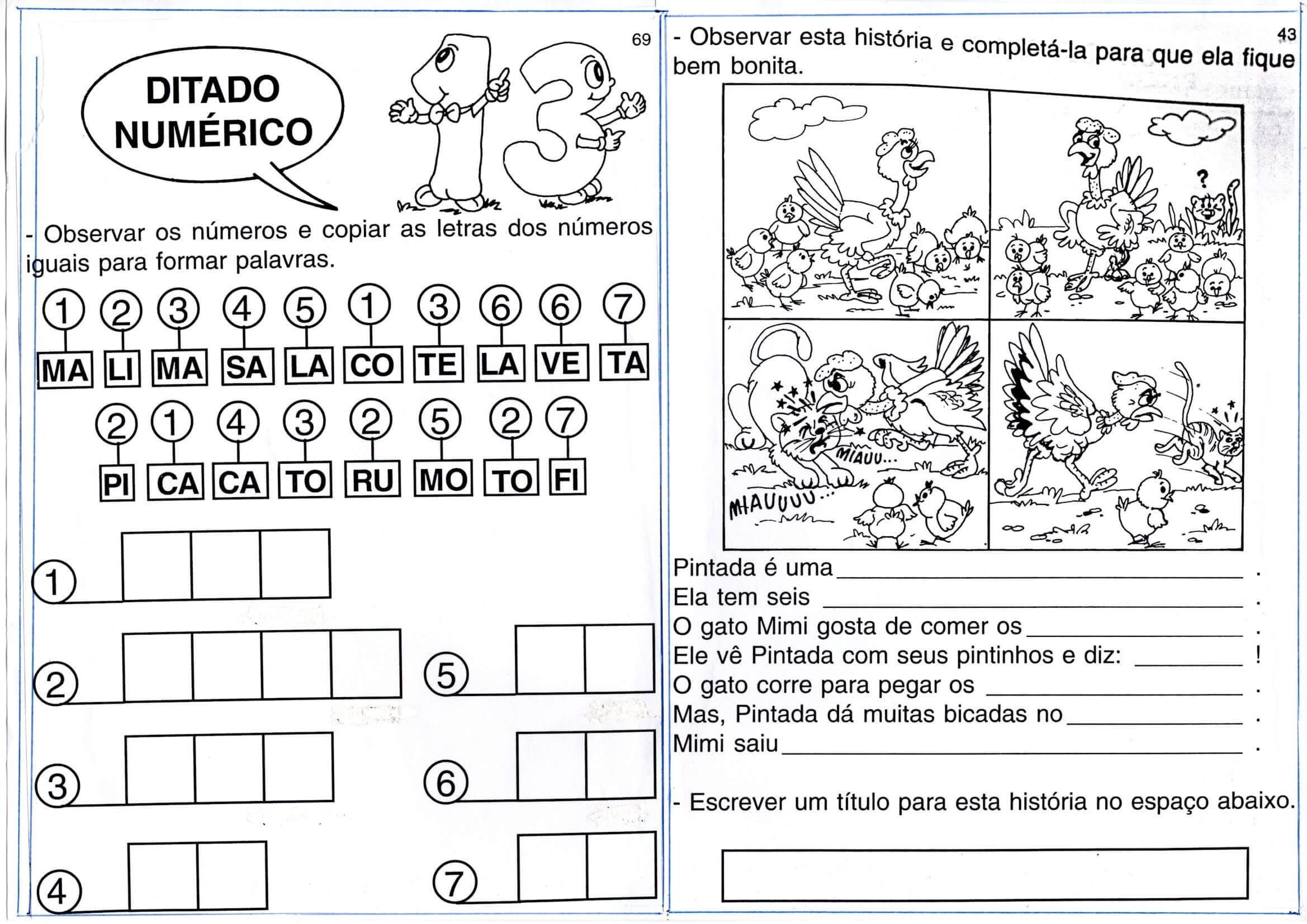 Ditado numérico e Produção de Textos com Lacunas. Atividade para casa com Ditado numérico e Produção de Textos com Lacunas para serem preeenchidas.