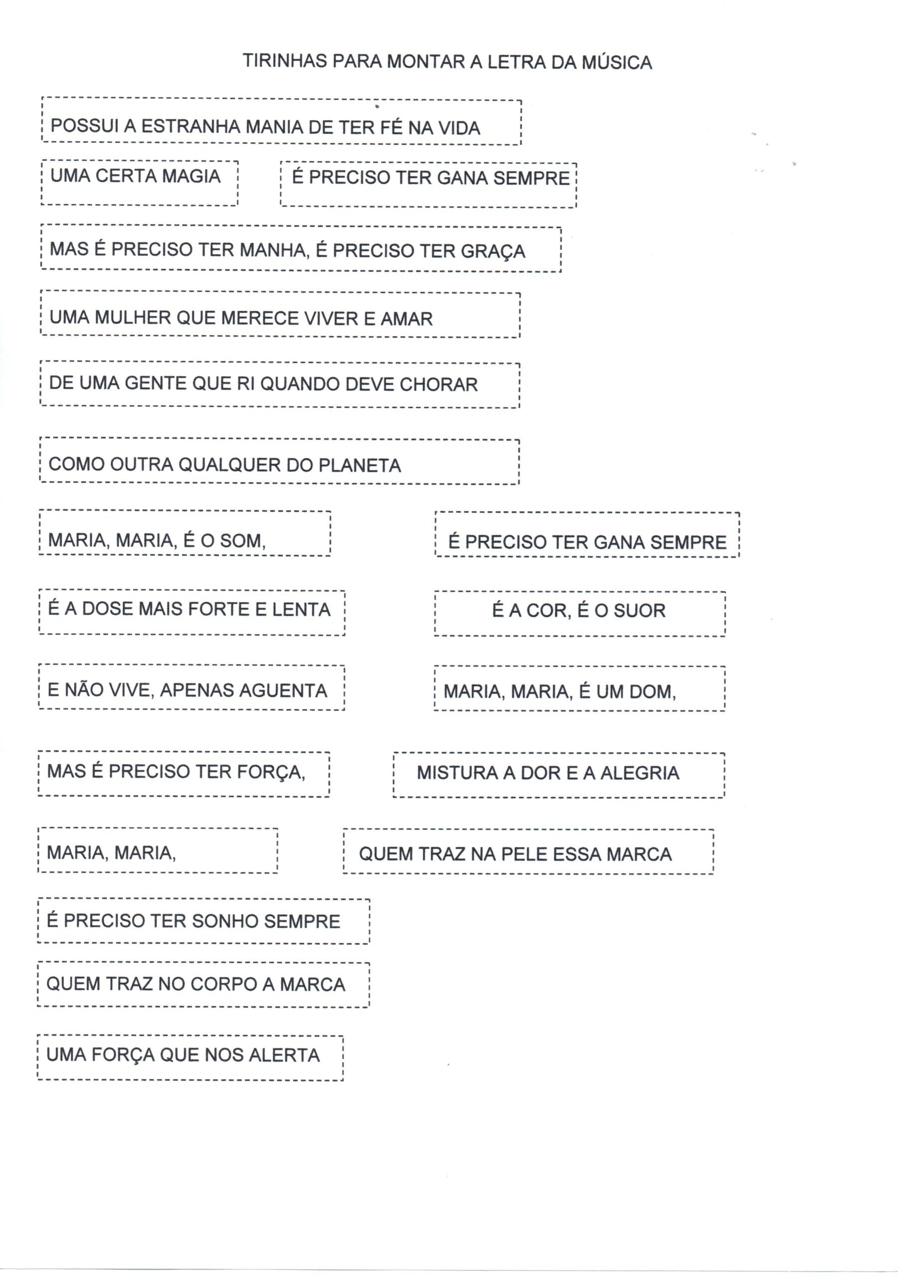 Tirinhas da música para recortar.