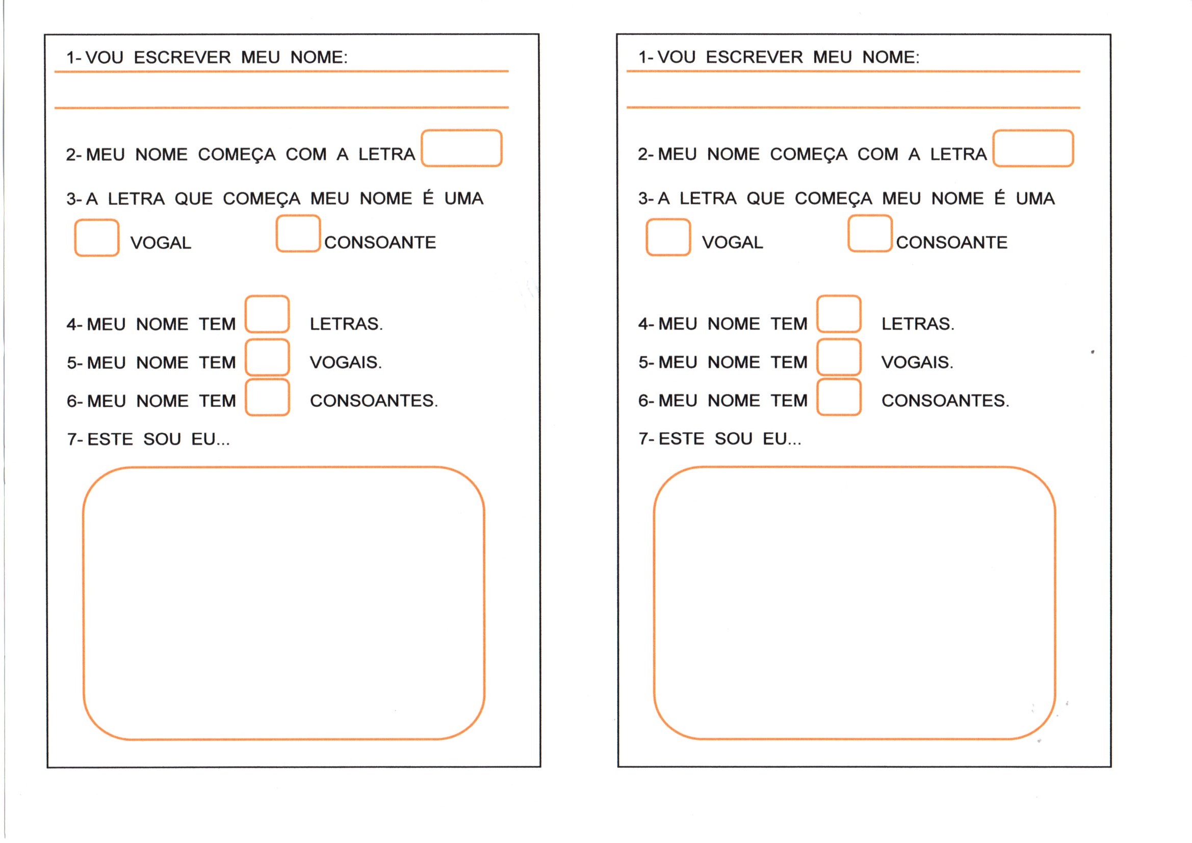 …Vogais-Vogal inicial-Nome e Consoantes é uma atividade de vogais para o aluno escrever o nome e diferenciar a letra com a qual seu nome começa.