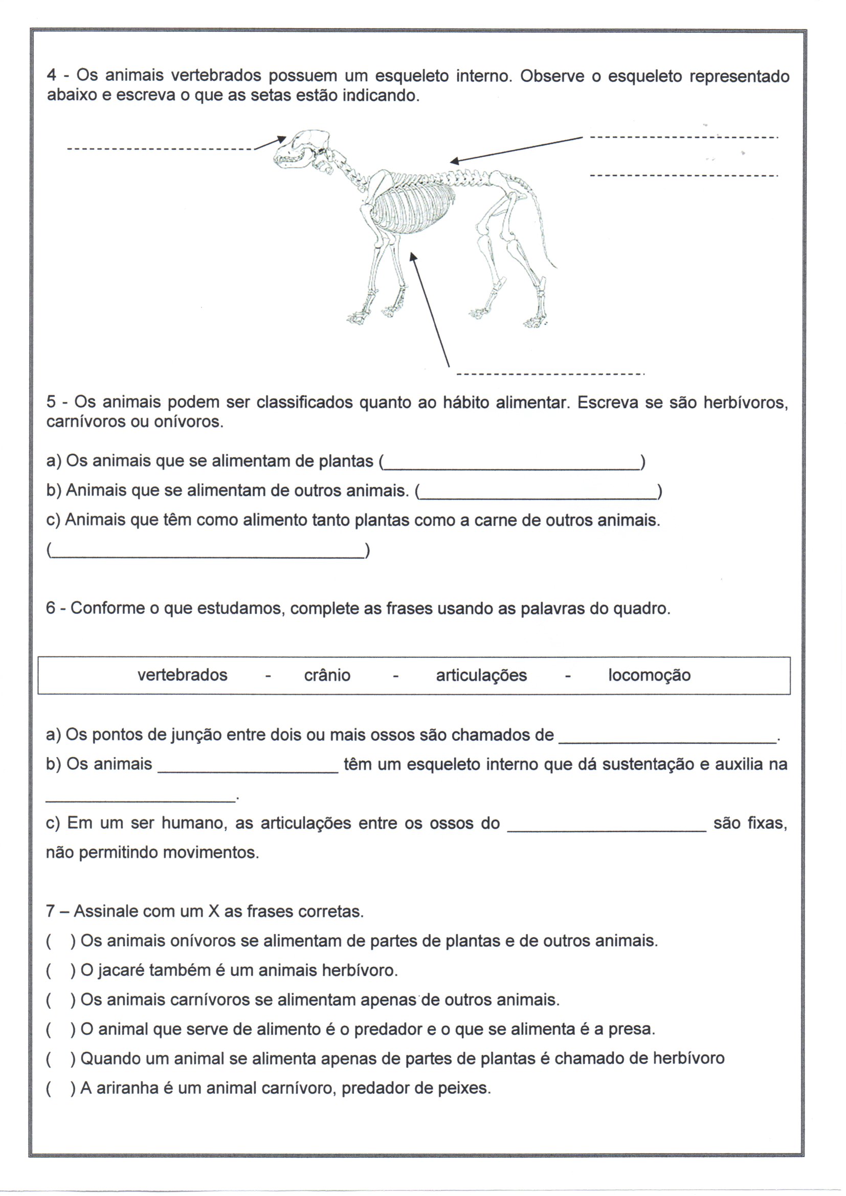 Esta é uma Atividade de Ciências com definição, descrição, esqueleto, hábitos alimentares e características corpóreas e cadeia alimentar.