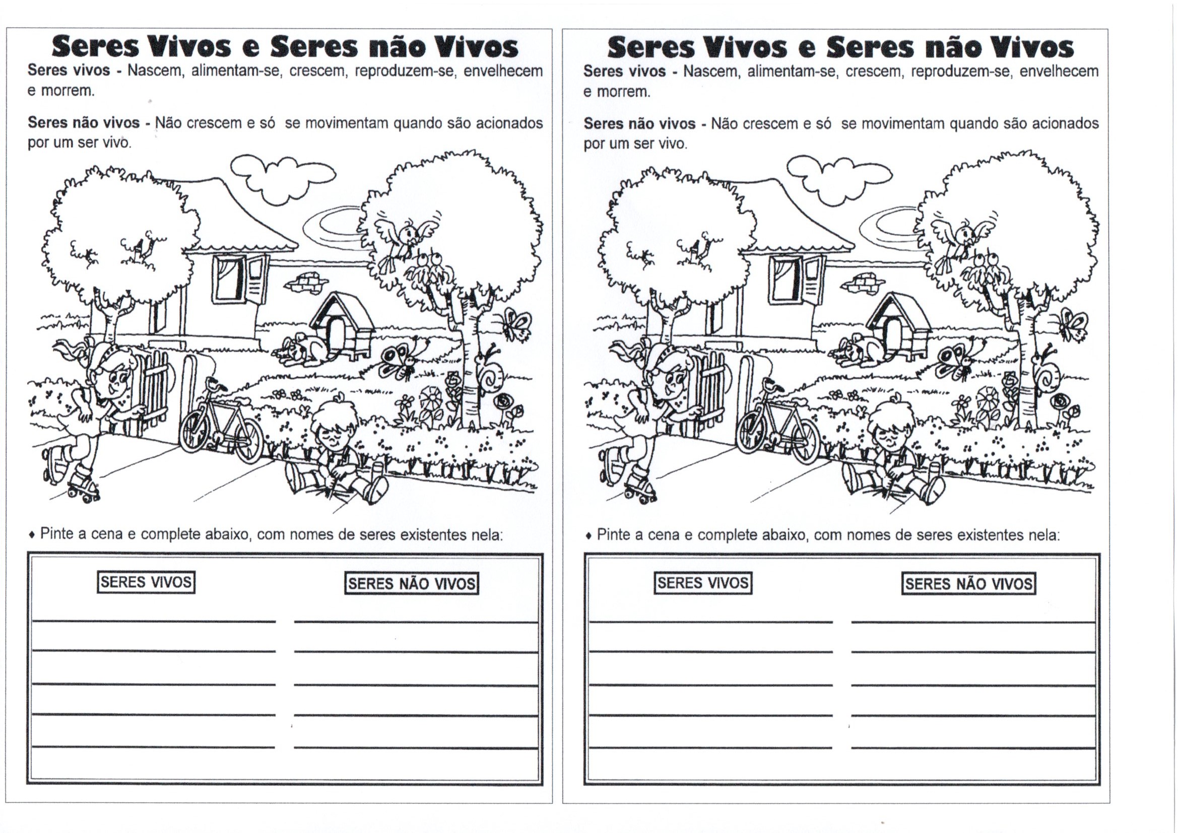 Ciências-Seres vivos e Não-vivos é uma Atividade de Ciências para trabalhar com seres vivos e não-vivos com uma breve descrição e um quadro para colorir e classificar os seres que aparecem.