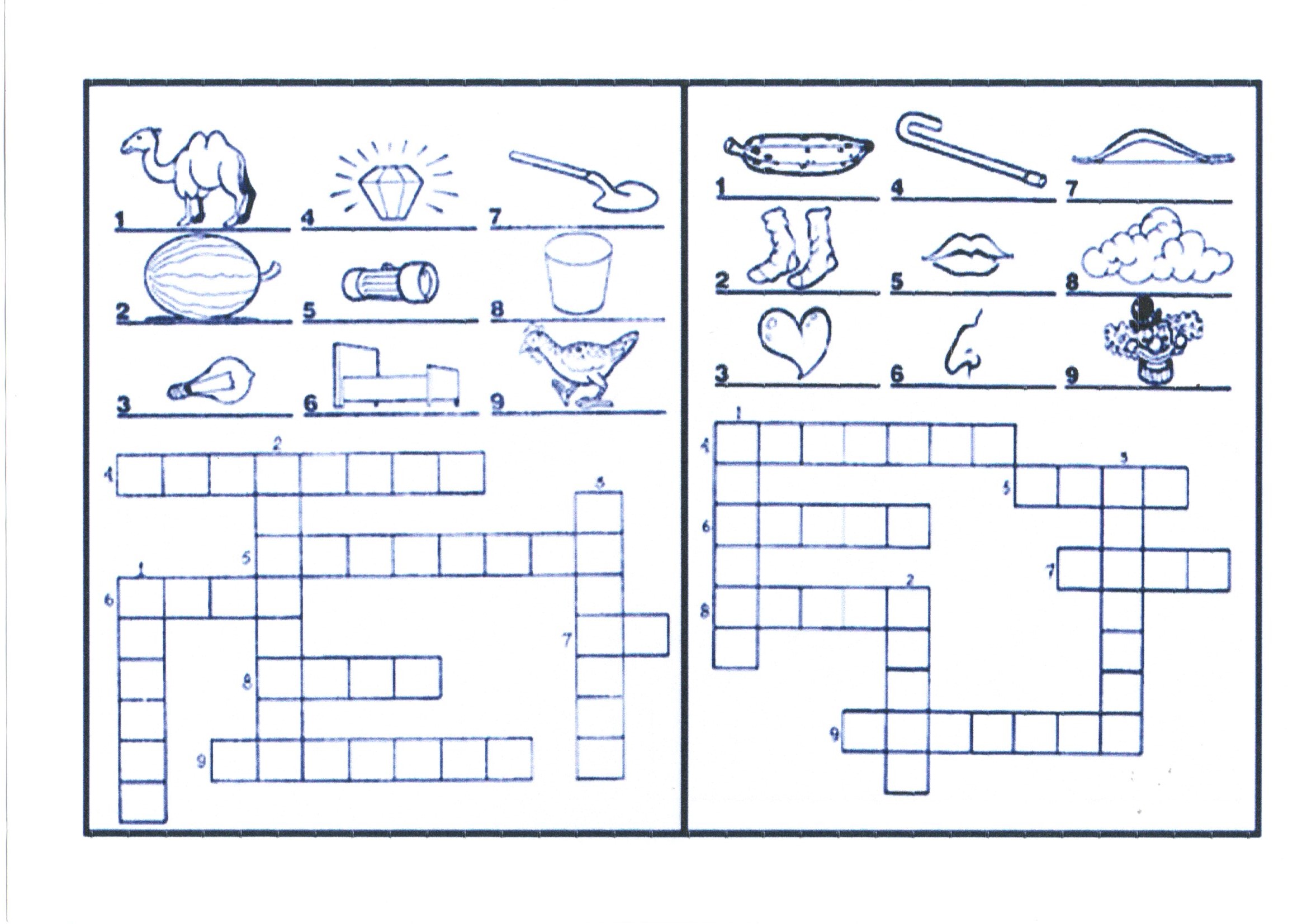 Cruzadinha com banco de imagens é uma atividade de Língua portuguesa com figuras e cruzadinha sem um banco de palavras.