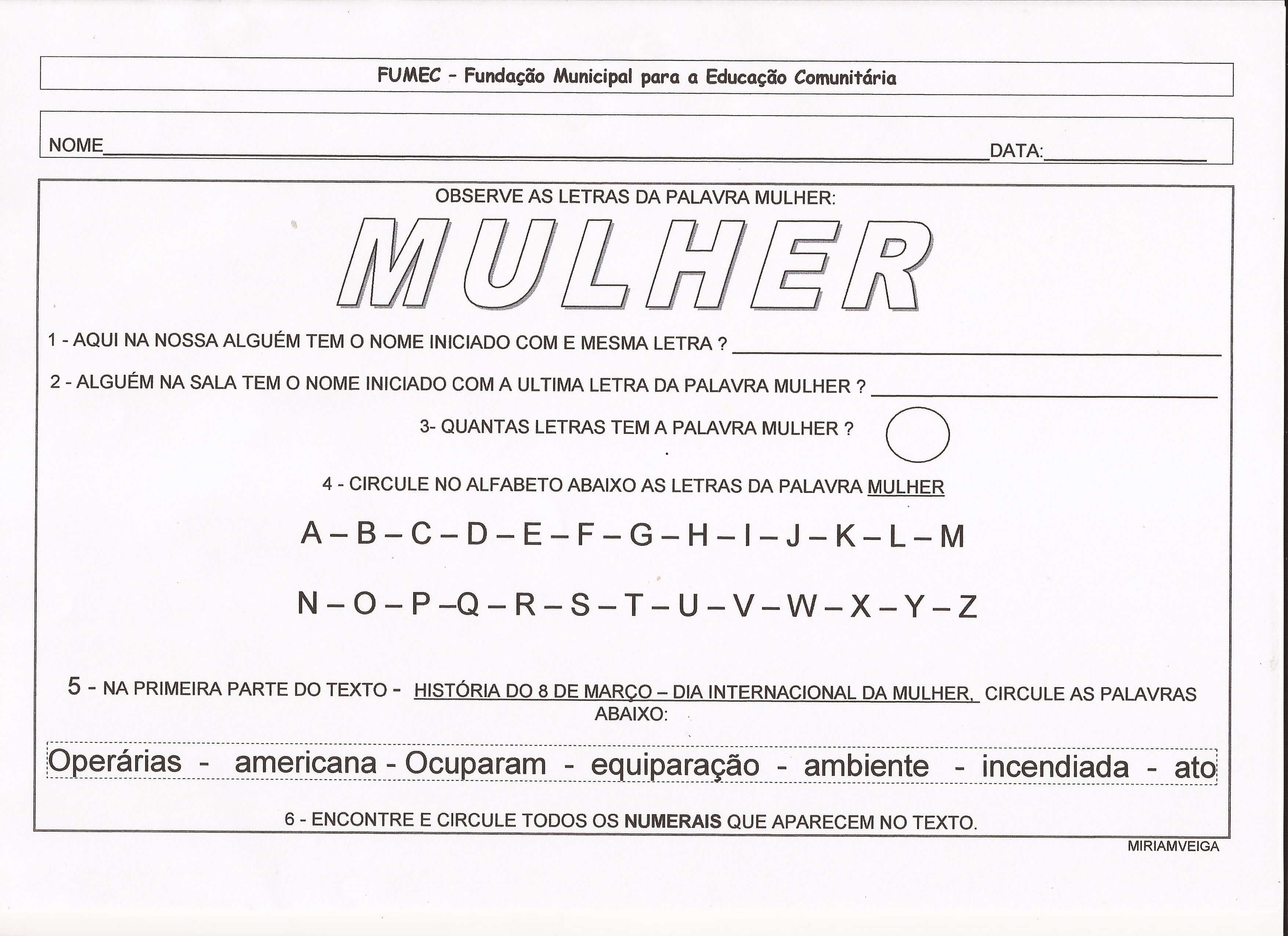 Miriam Veiga. Alfabetização Blog. Atividades de Ensino Fundamental e EJA.