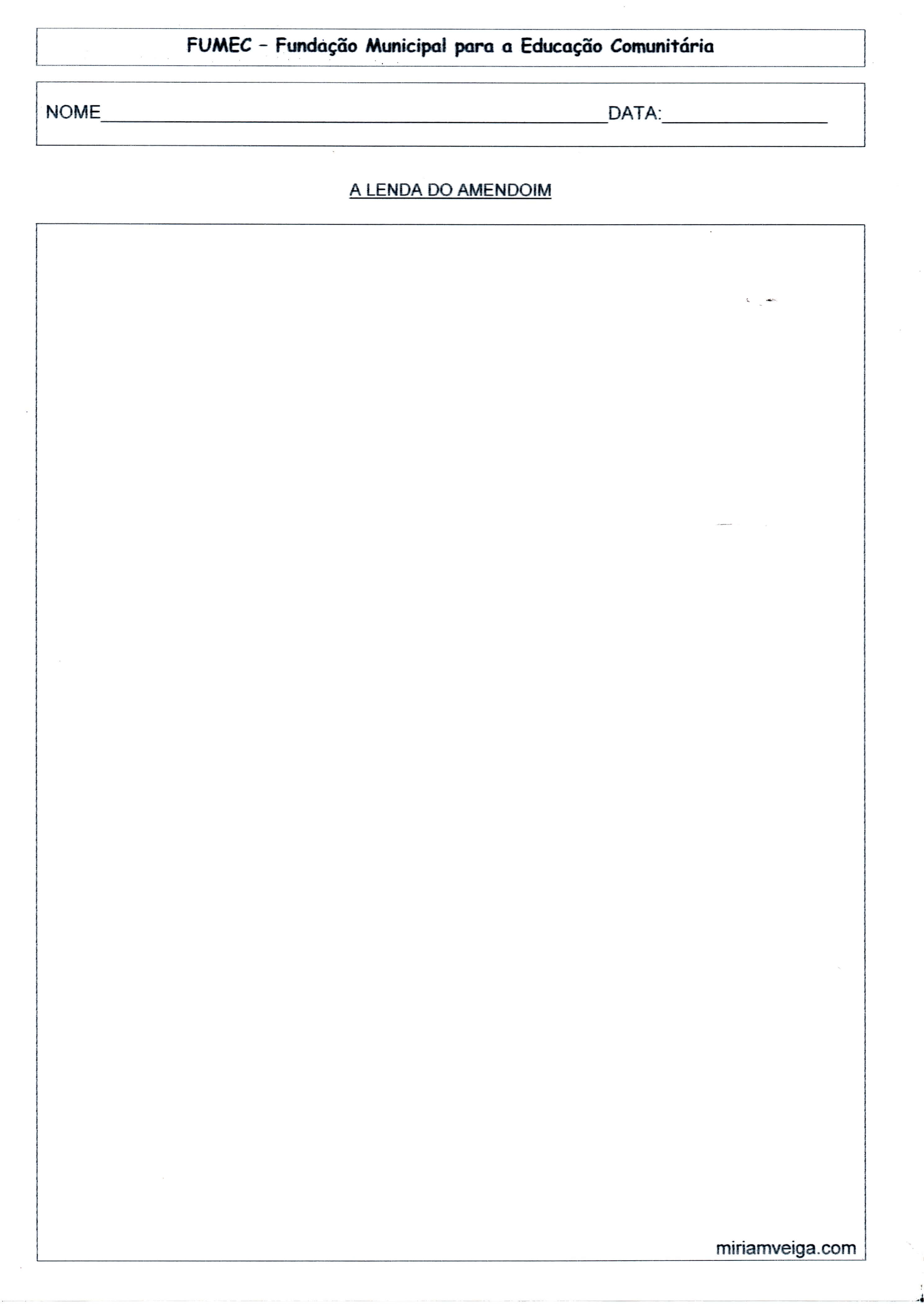 Lenda do Amendoim. Atividade de EJA composta pela folha da Lenda do Amendoim e da folha para fazer o desenho (atividade).