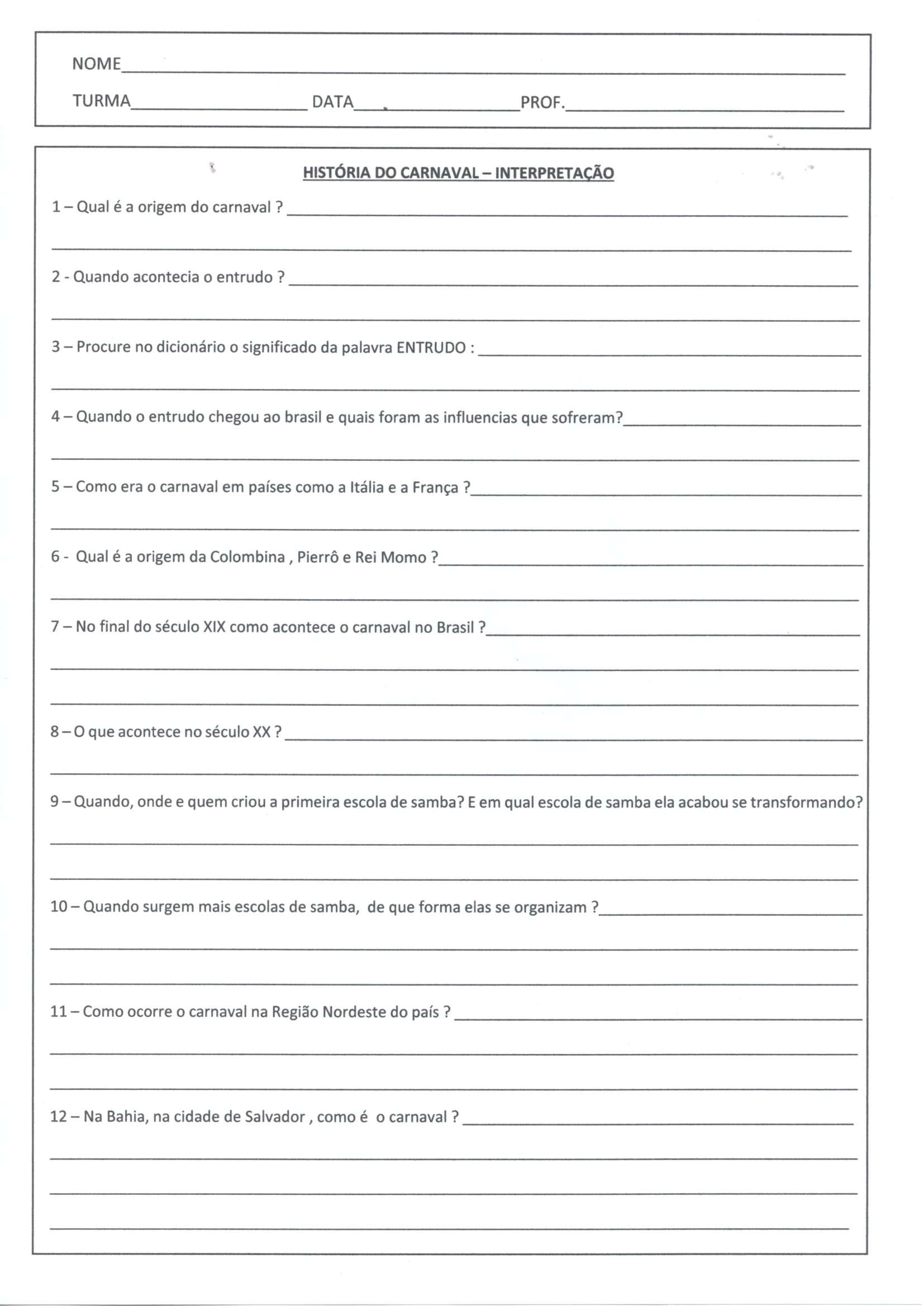 - Atividades de Carnaval-História do Carnaval no Brasil