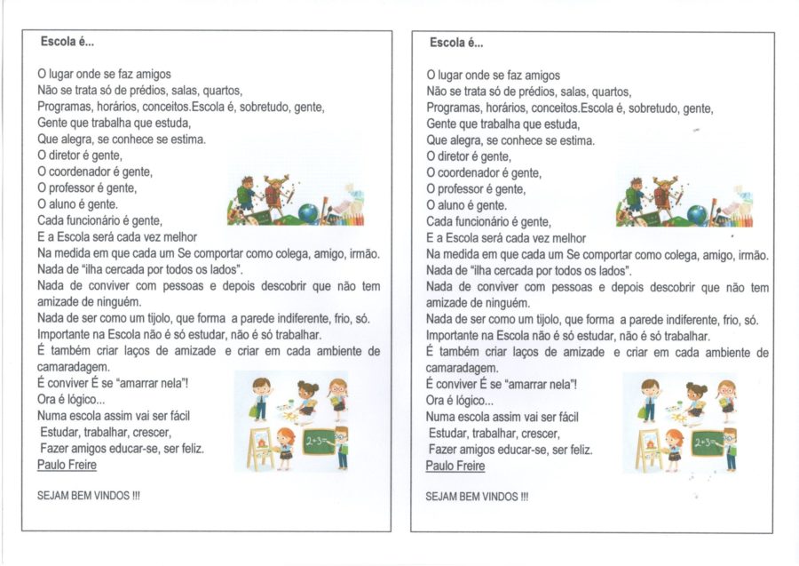 - Mensagem de Bem-Vindos à Escola