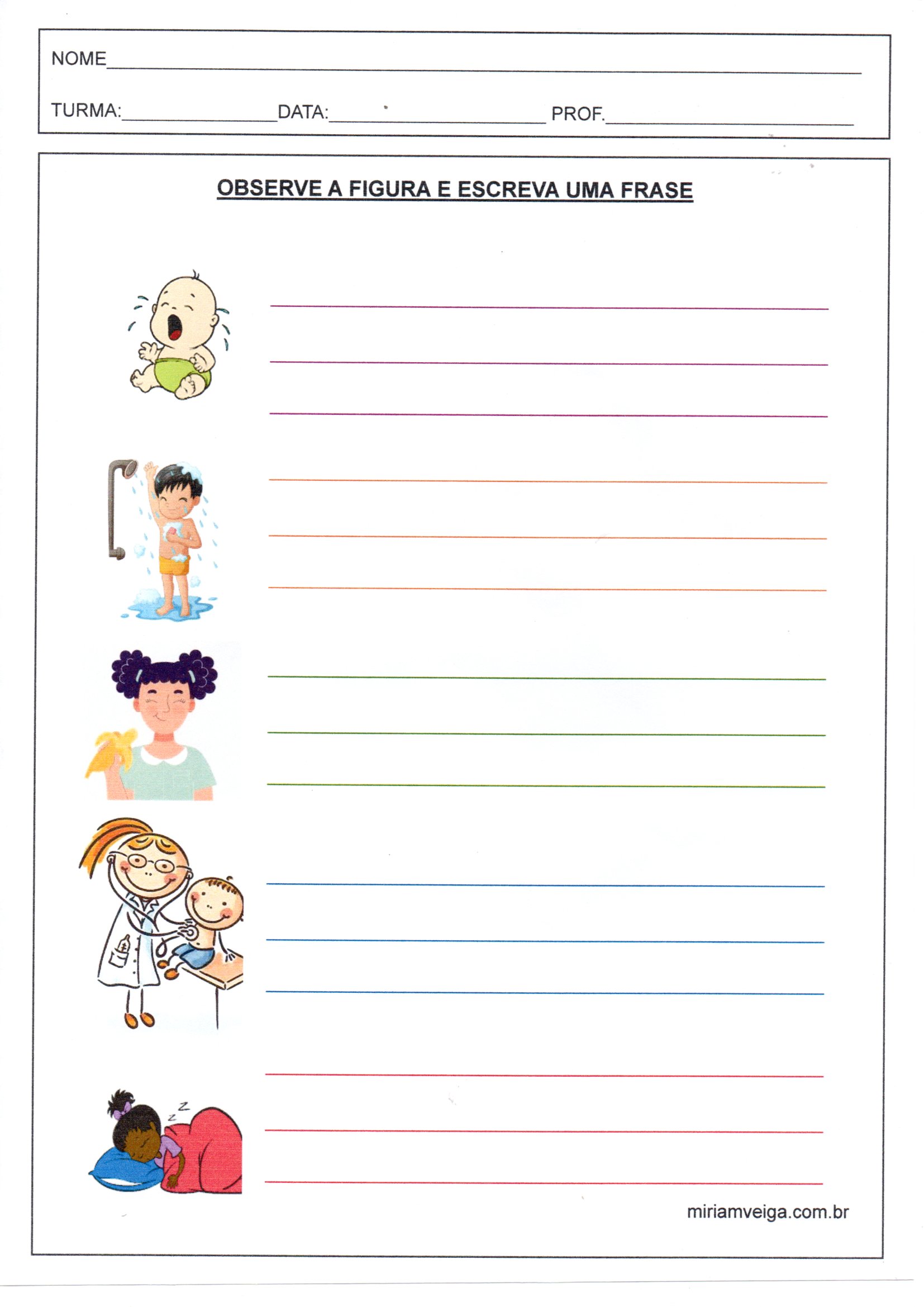 Esta é uma atividade de Língua portuguesa com figuras para que os alunos escrevam frases a partir de cada uma.