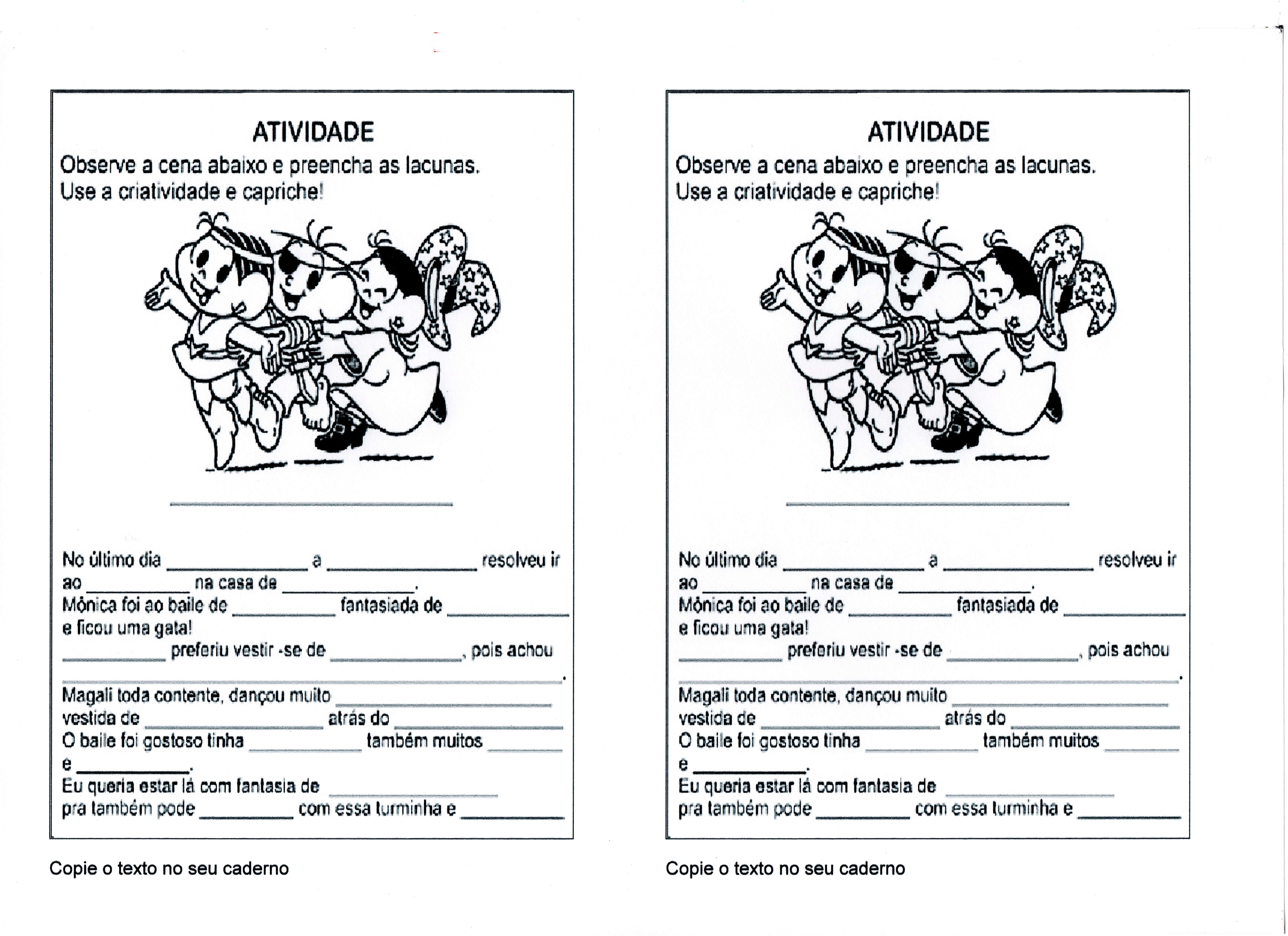 Após ler os livros das personagens esta atividade poderá ser aplicada para os alunos.