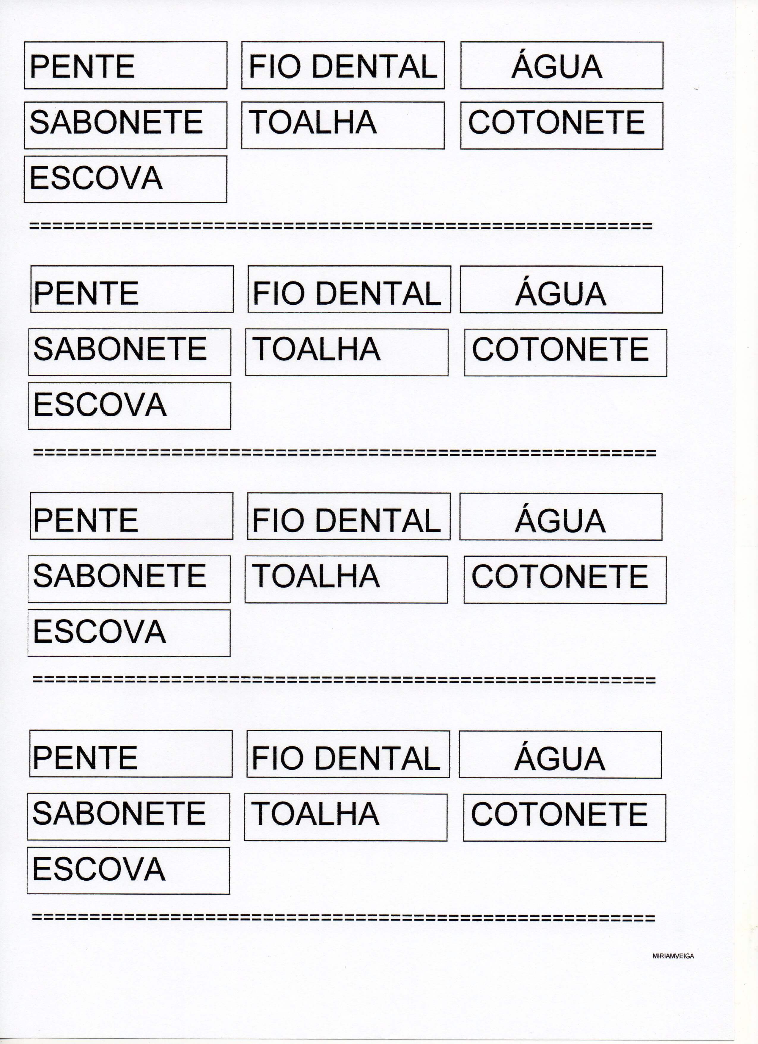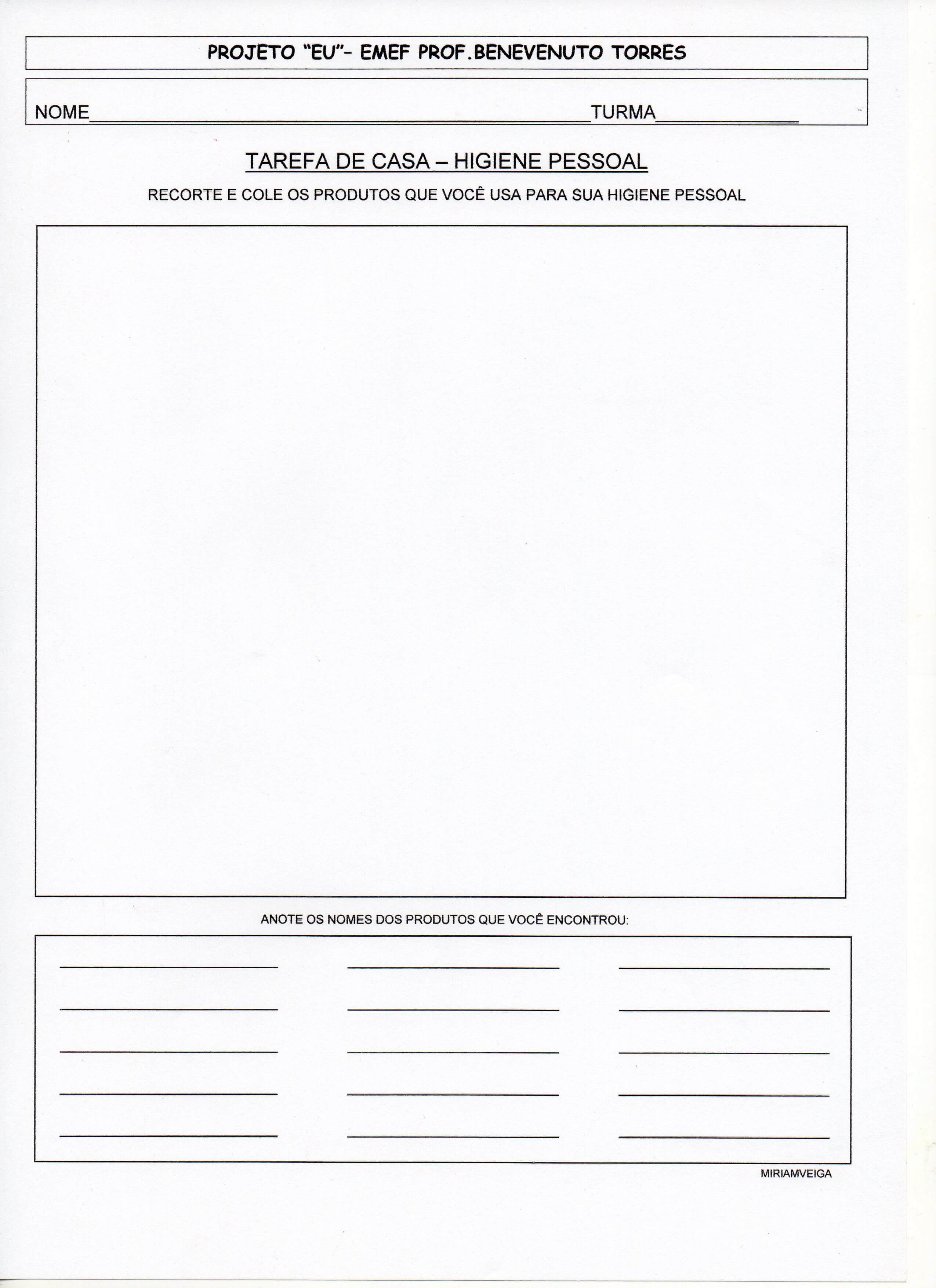 Projeto EU-Higiene pessoal – Cole os nomes