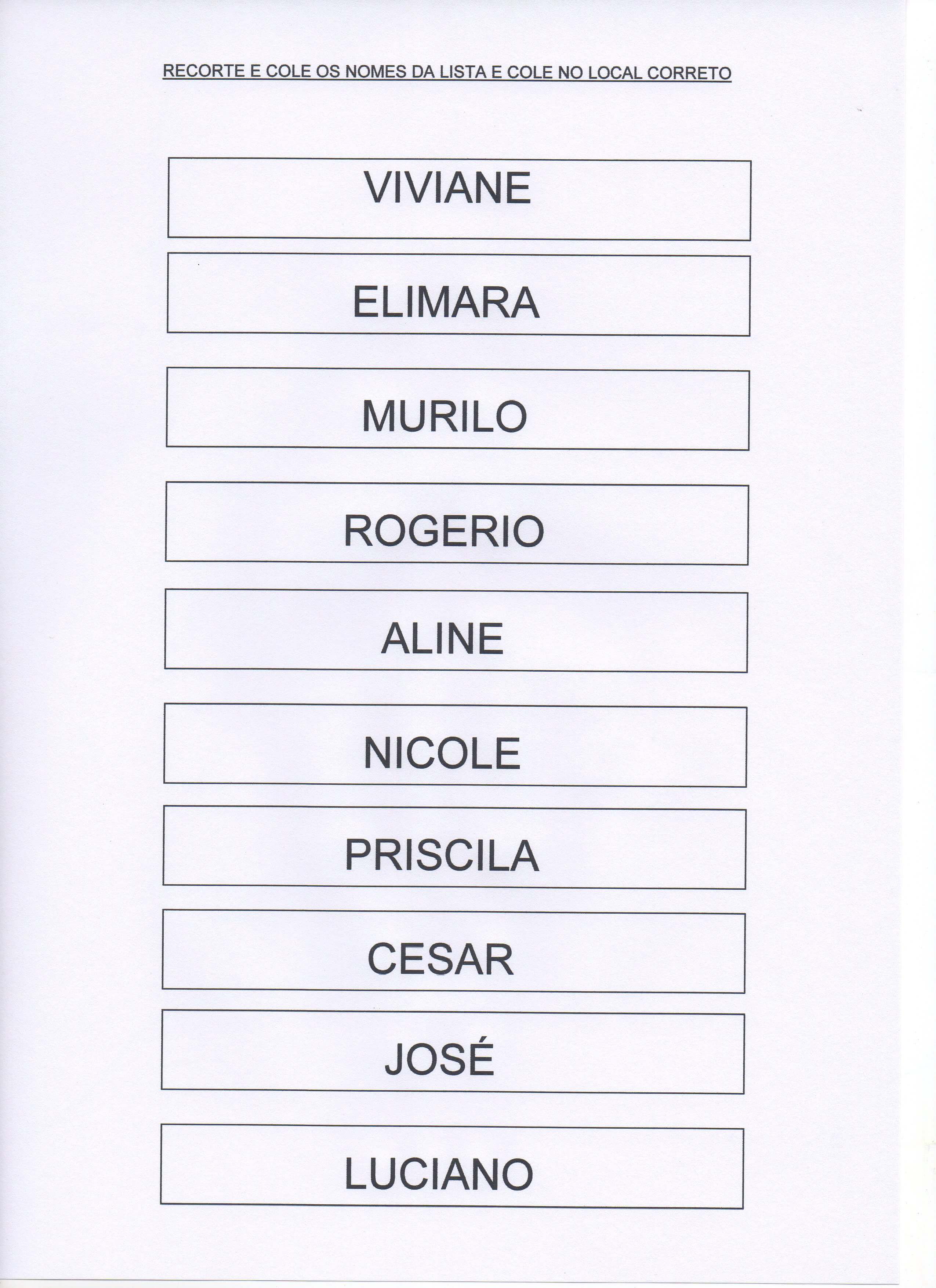 Avaliação diagnóstica – 1º anos – Pintar nomes.