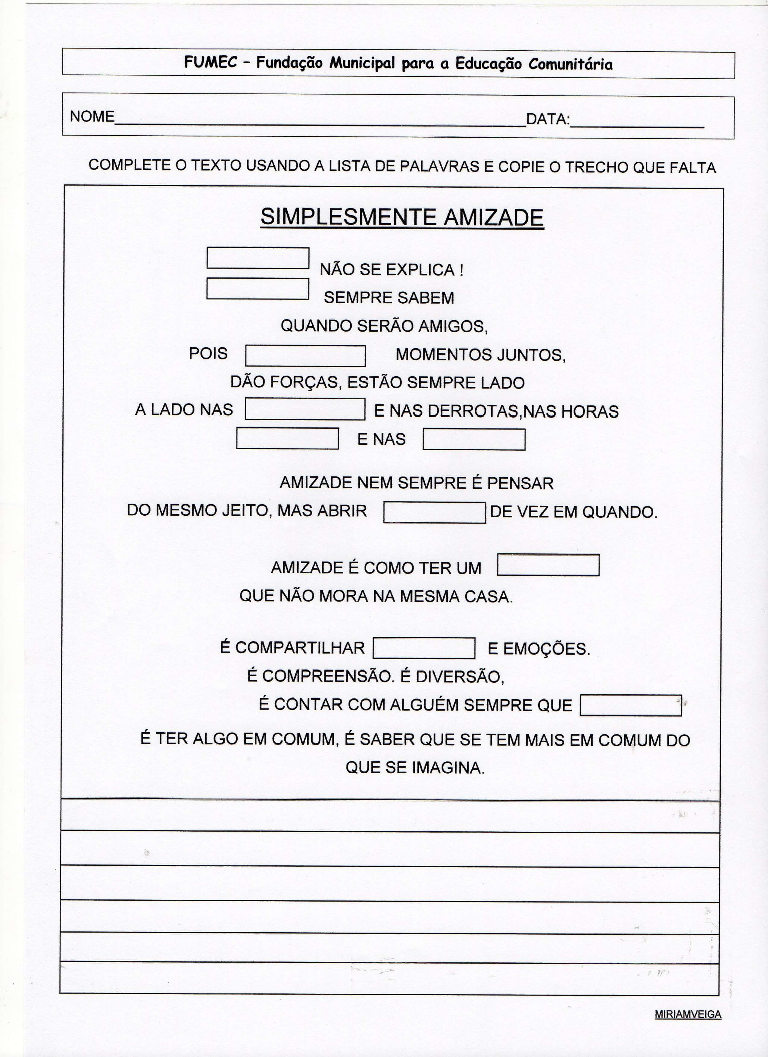 🙂 Miriam Veiga. Alfabetização Blog. Atividades de Ensino Fundamental e EJA.