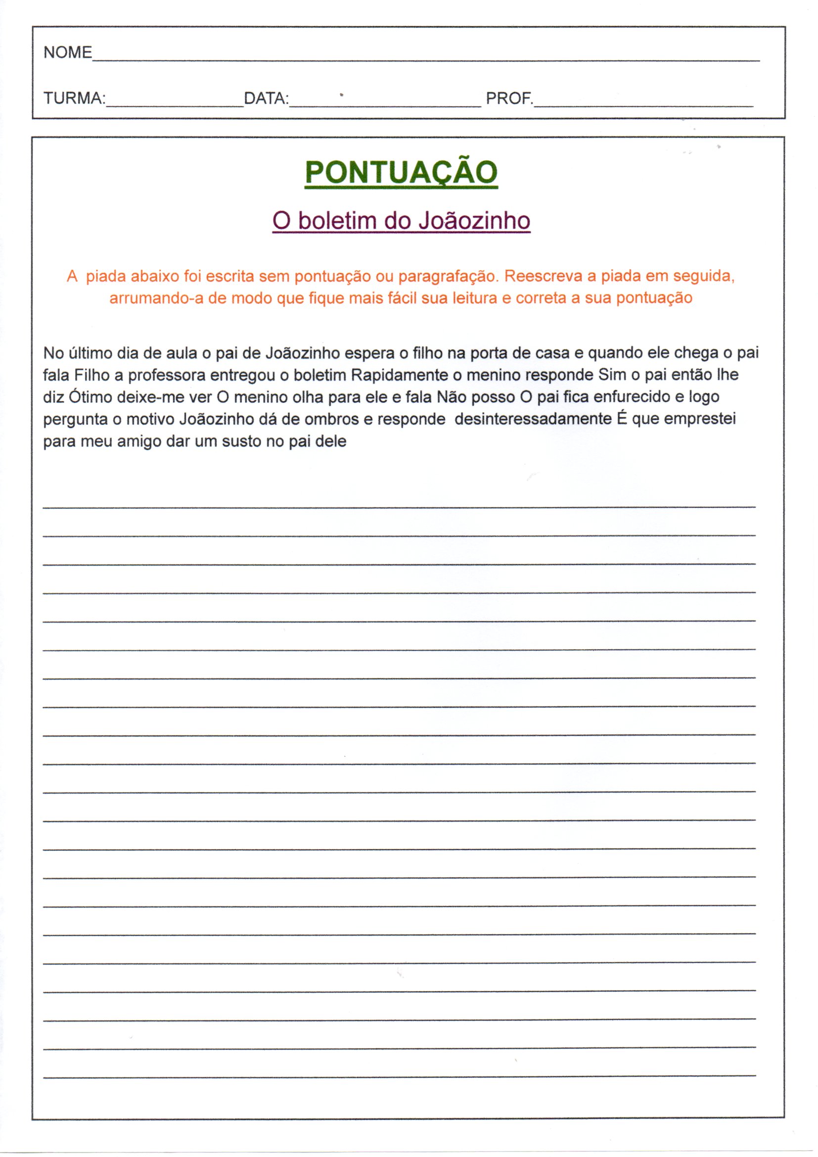 Pontuação-O boletim do Joãozinho é uma Atividade de Pontuação para REESCREVER as frases do texto com a pontuação correta.