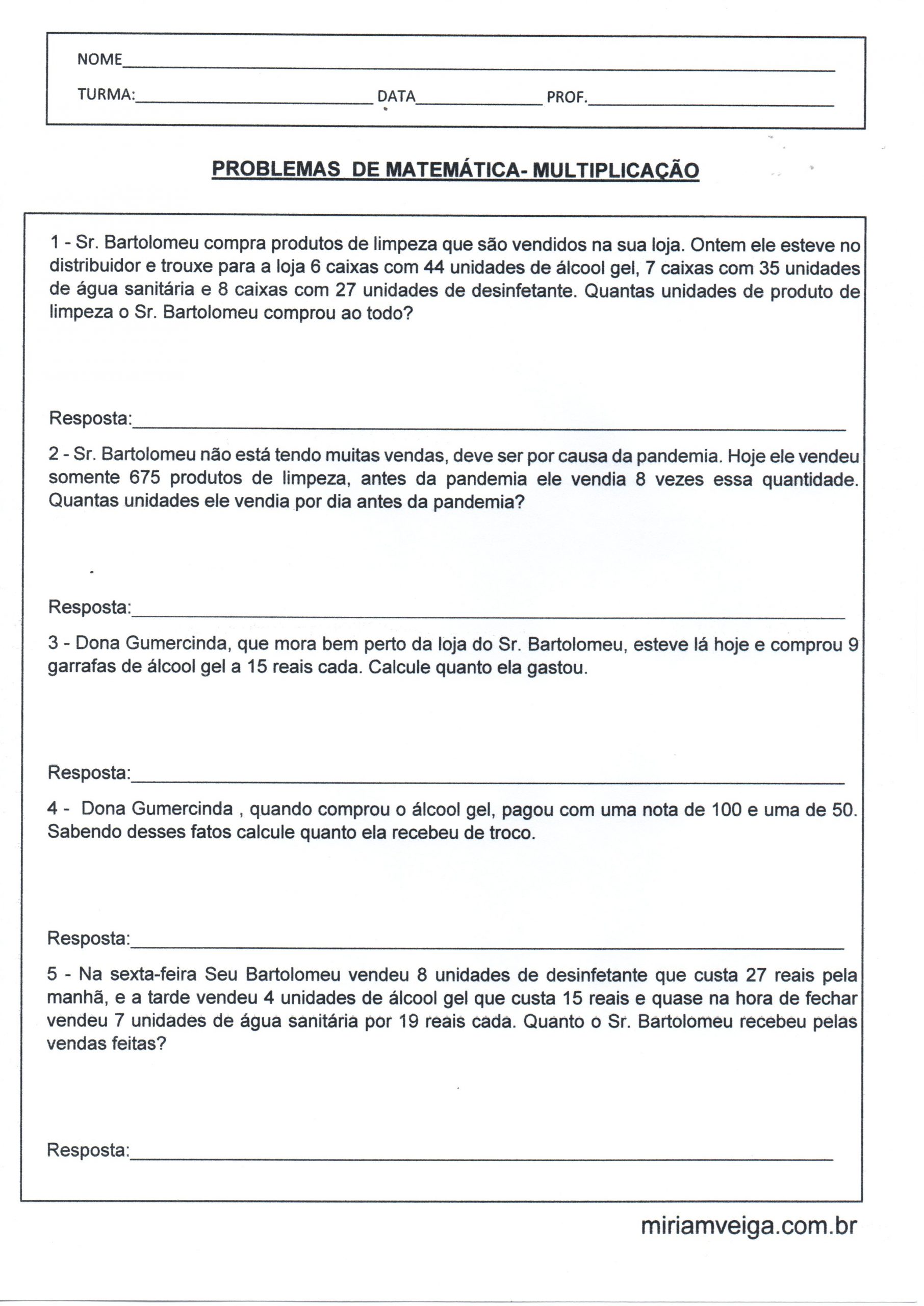 - Problemas de Matemática Multiplicação 5