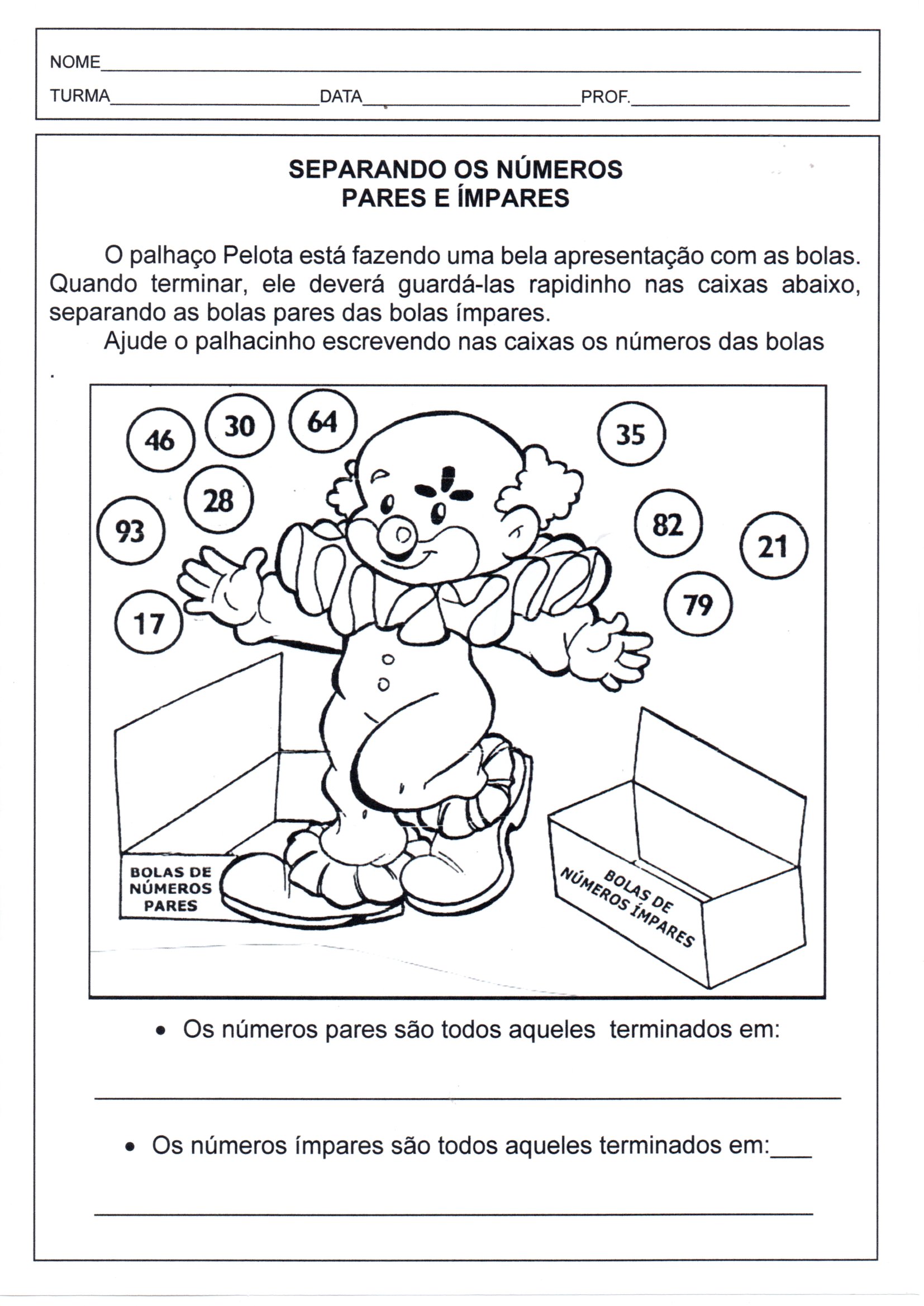 - Atividade com números pares e ímpares