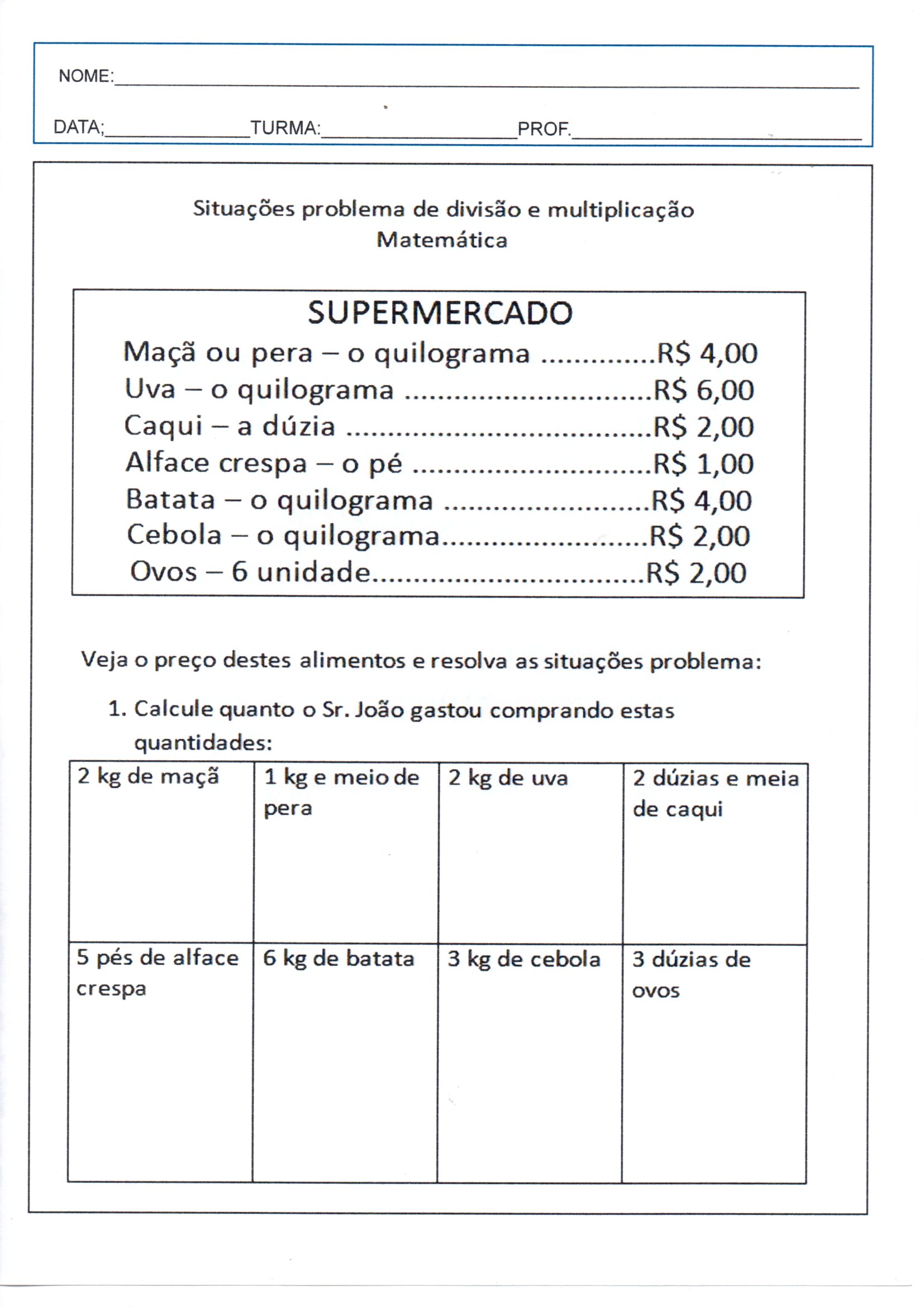 Subtração e Divisão com Tabela é uma Atividade de Matemática com uma tabela e Situações-problema de Subtração e Divisão para calcular.