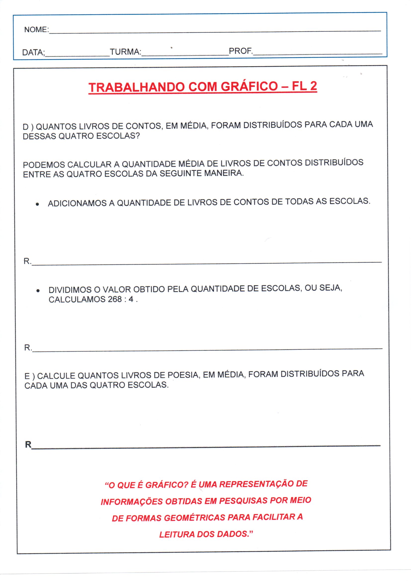 Trabalhando com Gráficos Parte 2 é uma Atividade de Matemática com Gráficos para análise e questões para responder por escrito, com média, adição e divisão.